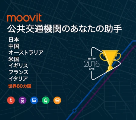 都市の移動を、もっとスムーズに、もっと賢く。Moovitは、あなたの旅を最初から最後まで完全にサポートする、究極の公共交通機関ガイドです。世界中の3500以上の都市で17億人を超えるユーザーに信頼され、まるで地元にいるかのように電車、バス、地下鉄などを使いこなすことができます。日本国内はもちろん、世界112ヶ国、45言語に対応し、いつでもどこでもあなたの位置情報に基づいた最適な交通手段を瞬時に提示します。目的地までの道のりを、不安なく安心して計画し、移動を楽しみましょう。