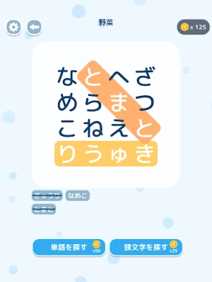 選んだテーマを元に、指で縦・横・斜めに文字をなぞって隠れた言葉を探し出すパズルゲーム。思考力を刺激し、時間を忘れて楽しめる文字探しです。
