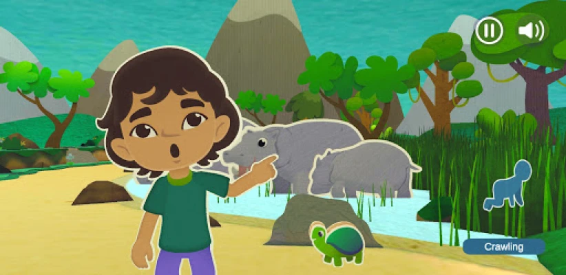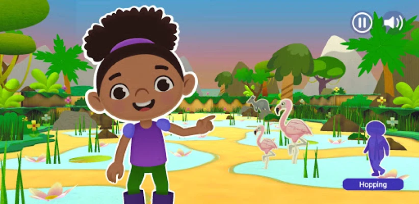 ワクワクする新しい冒険へ出発!このアプリでは、二人の友達が探検に出かけます。キャラクターがお手本を示す楽しい動きを子供たちが真似することで、障害を乗り越え、様々な冒険を成し遂げていきます。