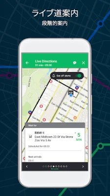 詳細な「交通手段プランナー」は、あらゆる公共交通機関を組み合わせ、リアルタイムの到着情報に基づいた最適なルートを提案します。どの交通機関を使えば良いか、迷うことはもうありません。さらに、「リアルタイムアラート」機能は、予期せぬ遅延、運休、混雑、工事など、路線のサービス状況に関する緊急情報を即座にお知らせします。これにより、事前に状況を把握し、迂回ルートや時間調整を迅速に行うことができるため、不測の事態にも冷静に対応し、貴重な時間を無駄にしません。