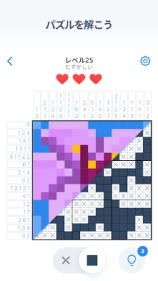 論理パズルが初めての方も、熟練のプレイヤーも、ノノグラムは誰もが楽しめるよう設計されています。もし途中で迷っても、賢いヒント機能があなたの手助けとなるでしょう。また、盤面を素早く埋めるための自動バツ付け機能は、思考の流れを止めずにスムーズなプレイを可能にします。数字の手がかりだけを頼りにマスを埋め、隠された絵を完成させる。このシンプルながらも奥深いルールが、あなたの想像力と分析力を同時に高め、達成感へと導きます。